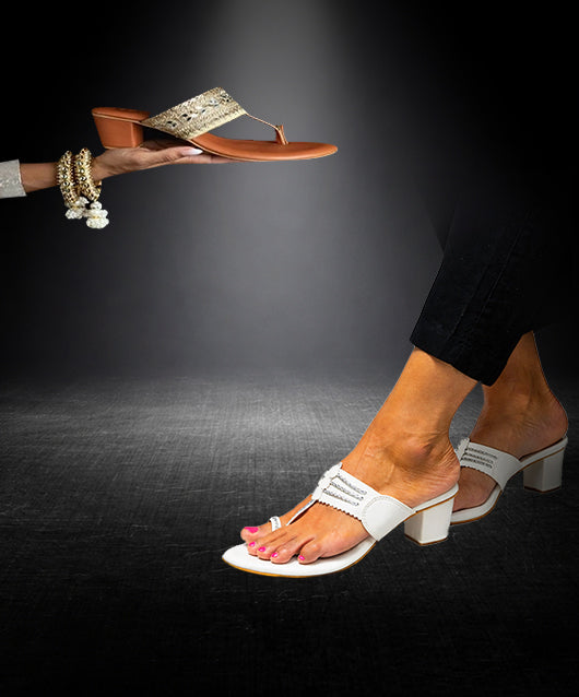 Wearing Kolhapuri-style heel footwear is a great way to experience women's fashion. You can look elegant in anything ethnic and also enjoy the comfort of flats without heels.