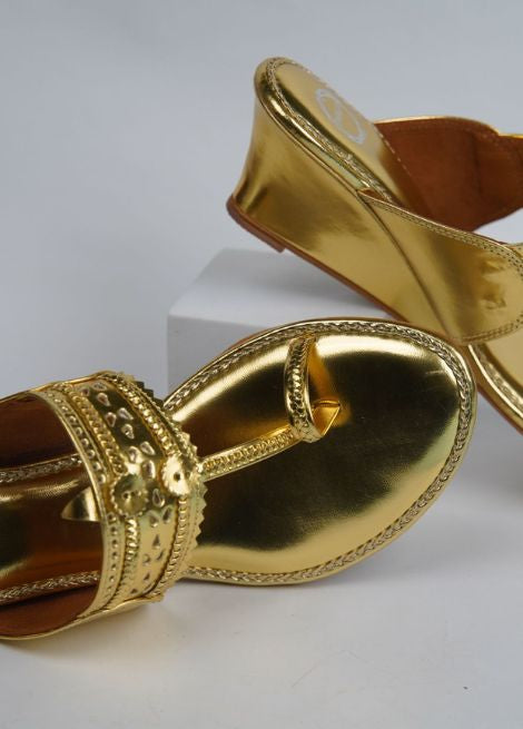 Perfect blend of elegance and ease. These double cushioned wedge heel kolhapuri is a mixture of tradition and trend making every step a celebration.