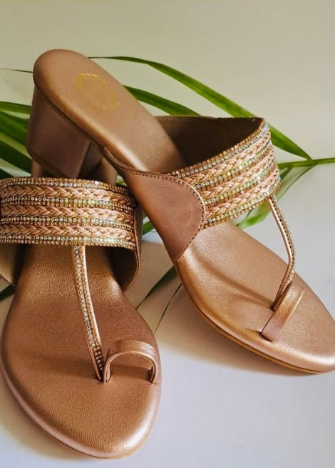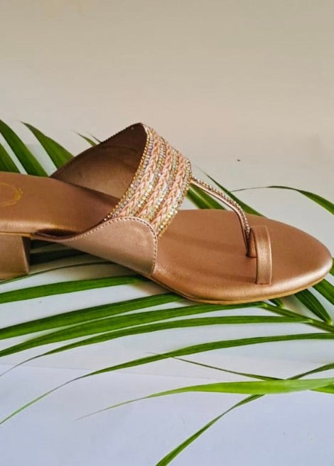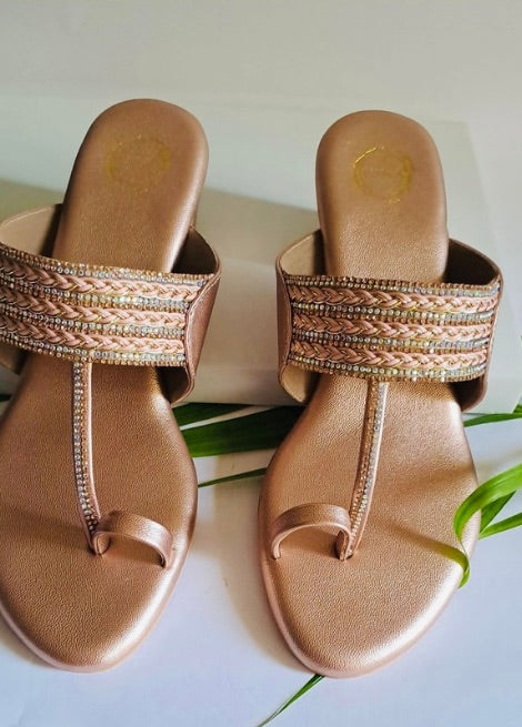 Step into glamour with Noorani Blush where traditional meets contemporary chic. These beautiful rose gold Kolhapuri add a touch of glitter in your walk.