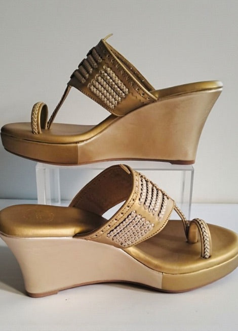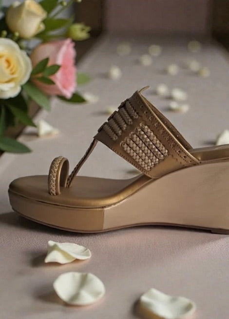 This handcrafted wedge Kolhapuri blends traditional Indian detailing with a clean, modern form, making it perfect for both daily wear and elevated occasions.